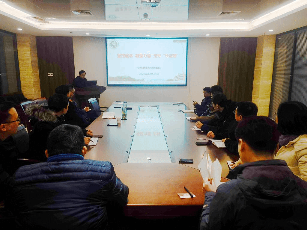 金安江代表学院做2021年学院工作汇报并做个人述职。报告以“坚定信念 凝聚力量,走好新时代‘长征路’”为主题,全面梳理了2021年度学院在党建与思政工作、人才培养、团队建设、对外交流、学院治理等方面的工作进展,提出了面临的挑战和努力方向。据介绍,2021年,学院新增全职教师6人、兼职(特聘)教授3人,招聘博士后6人;获批国家基金4项、国家重点研发计划子课题2项,在国际高水平期刊发表论文8篇,2人担任国际杂志副编辑和客座主编;举办国际国内学术论坛、跨学科学术研讨会13场;与武汉市肺科医院、华大基因、武汉汉密顿生物科技公司建立合作关系。他表示,新的一年要稳步推进学院“十四五”事业发展规划各项核心任务落实落地,在学科特色发展、人才团队建设、产学研融合等方面出实招、新招,争取异军突起,助力学校“双一流”团队建设。副经理董志强报告了个人在理论学习、国际合作交流、实验与学术平台建设、立德树人等方面的工作。