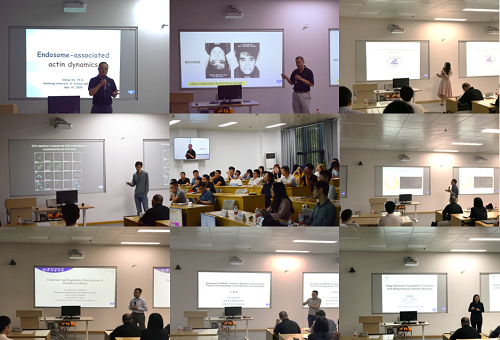 接下来张珞颖教授作了“Human PERIOD3 Variants Modulate Mood Traits”的报告,与大家探讨了季节性情感障碍的生物学机制,PERIOD3基因的突变可能影响了生物节律。荣岳光教授以“The Fate of Autolysosome”为主题描绘了溶酶体依赖性的细胞自噬发生的过程,通过双层膜结构将细胞内废弃物转运至溶酶体降解,其中Sting和Spinster等因子可能在其中发挥了关键作用。而对于线粒体自噬,季维克教授介绍了内质网介导线粒体分裂的作用机制与其中VPS13D可能的潜在功能。王玉刚教授则对组蛋白酰化的功能与调控机制及代谢失调后对人体健康的危害进行了详细讲解。丁彬彬教授讲述了线粒体自噬调控脂滴和脂肪代谢的故事。最后张晓妍教授以“Golgi Structure Formation, Function, and Response to Cellular Stresses”为题探讨了高尔基体GRASP蛋白在维护高尔基体结构、功能以及对细胞迁移、增殖、自噬等多种细胞活动的作用。各位教授的报告吸引了与会师生参与讨论,大家纷纷提出自己的疑惑,“记忆是否可以修改?”“光照治疗冬季抑郁是由于调整了生物钟还是其他光响应基因呢?”等等,报告人对大家的问题一一进行了回答。